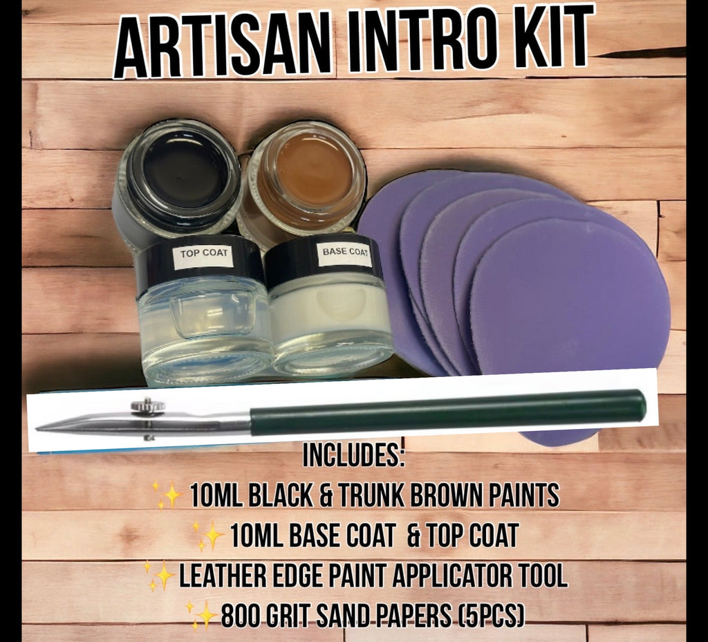The artisan intro kit is meant for individuals who are into leather works, bag makers, or hobbyists who just want to try out leather edge painting and are on a budget, but wants to have everything they need to start learning how to edge paint their projects.